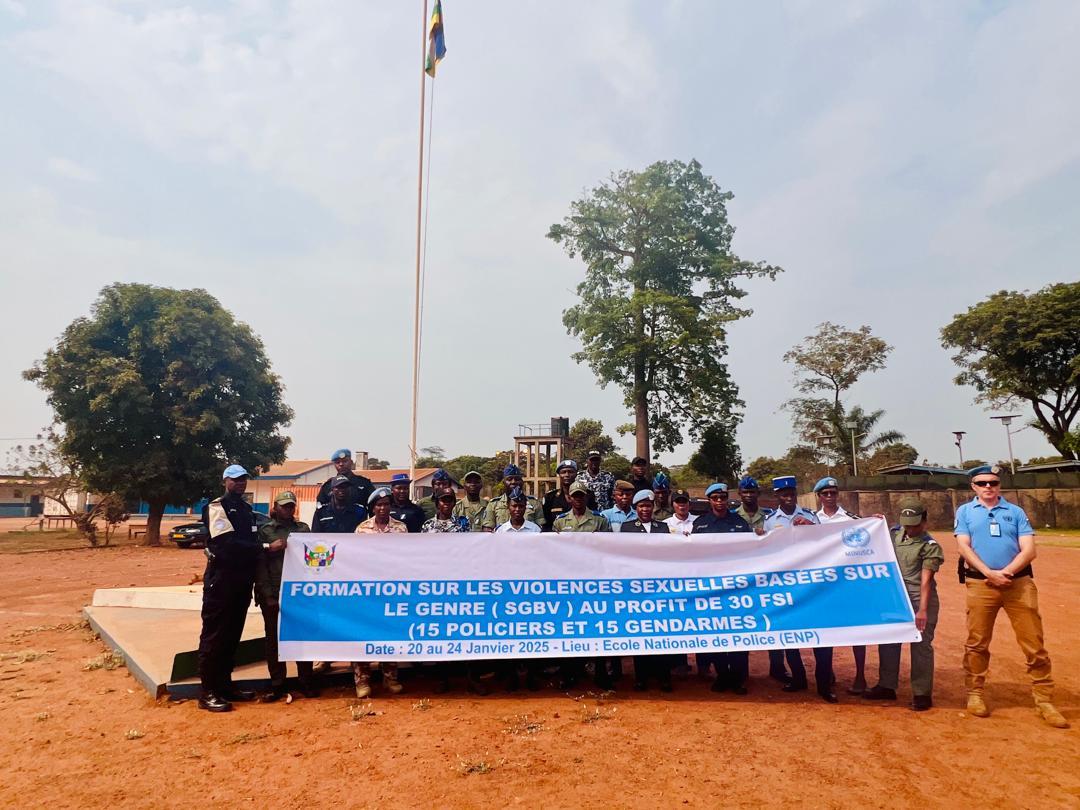 Une trentaine de membres des Forces de sécurité intérieure (FSI), dont 8 femmes, participent à partir d'aujourd'hui 20 janvier et jusqu'au 24 janvier à une formation organisée par la police de la MINUSCA sur la gestion des cas de violences sexuelles et la lutte contre l'impunité des auteurs de ces crimes.