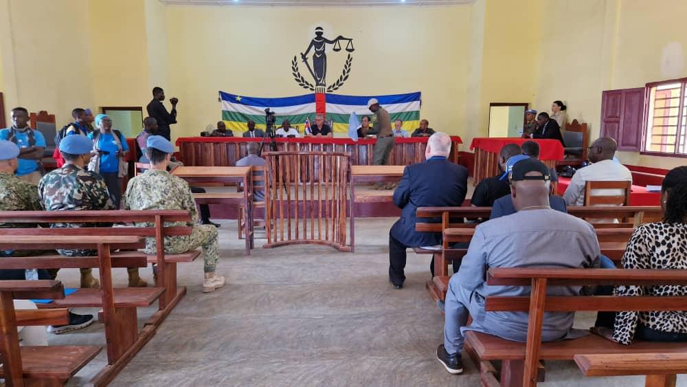 A la Cour d’appel de Bambari, autre étape dans l’agenda du Secrétaire général adjoint de l’ONU aux opérations de paix, il a été question avec le président de la cour, Fulbert Maurille Ngalhi, de passer en revue l’appui que la MINUSCA apporte à cette institution judiciaire. Selon M. Ngalhi, au-delà de la construction et l’équipement du bâtiment de la Cour d’appel, la MINUSCA a apporté un soutien inestimable dans la tenue de la session criminelle d’octobre 2024, la première depuis plus de 14 ans. Tout en remerciant la Mission, le président de la Cour d’appel de Bambari a plaidé pour la réhabilitation des tribunaux de première instance qui relèvent de la Cour d’appel.