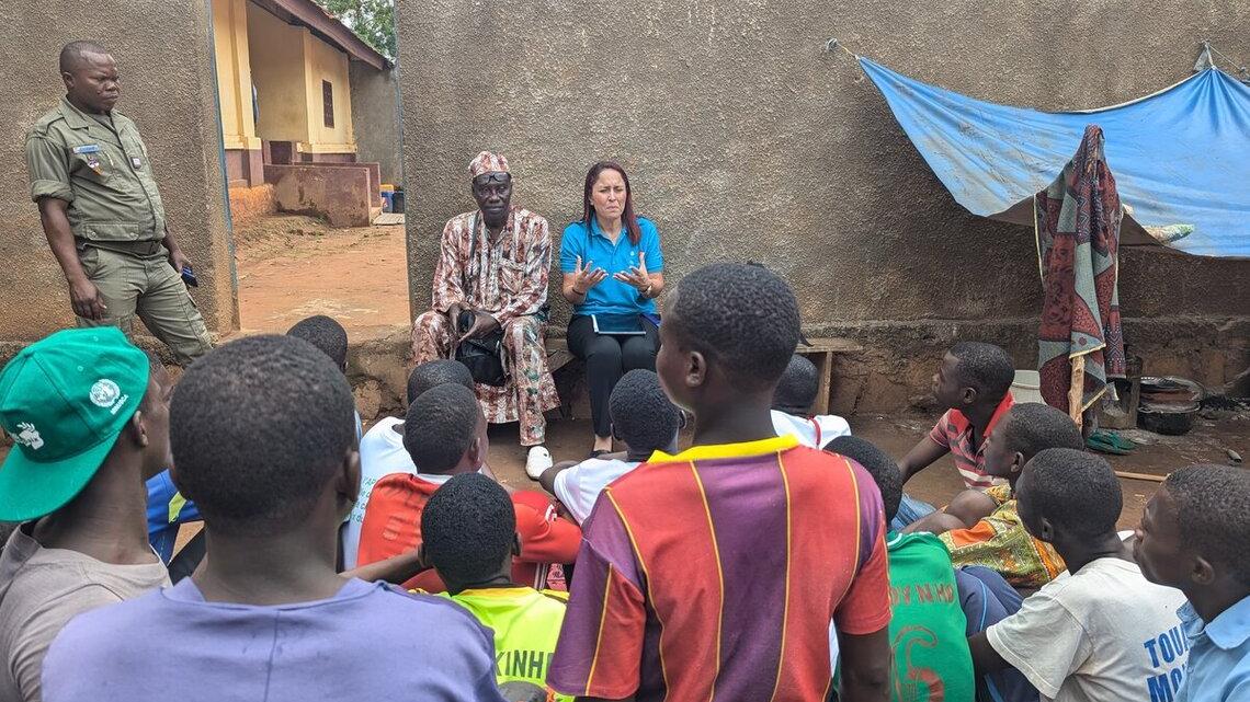 Lors d'une séance de sensibilisation organisée par la MINUSCA, la psychologue clinicienne Sarah Ferchichi a abordé les maladies mentales les plus courantes en milieu carcéral auprès des détenus de la maison centrale de Bambari. Cette initiative, accompagnée d'un don de kits de dignité dans le cadre de la journée Mandela, a été largement saluée par le personnel pénitentiaire et les détenus.
