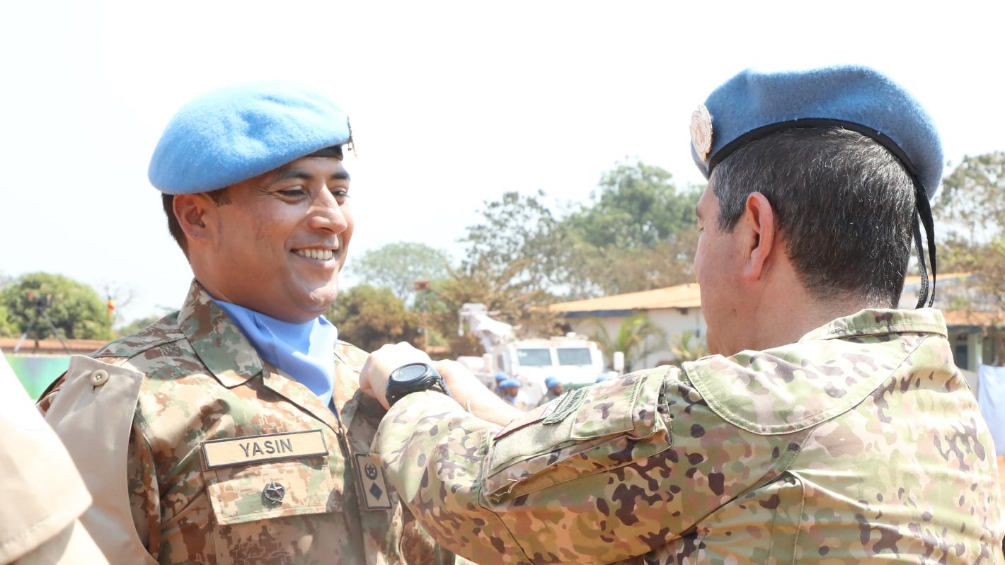 750 éléments du 8e Contingent Pakistanais de la MINUSCA, en fin de mission, ainsi que 215 éléments de l’Unité de génie, ont été décorés de la médaille des Nations Unies, vendredi 20 janvier 2023 à Kaga-Bandoro, pour leur contribution au maintien de la paix en République centrafricaine (RCA).
