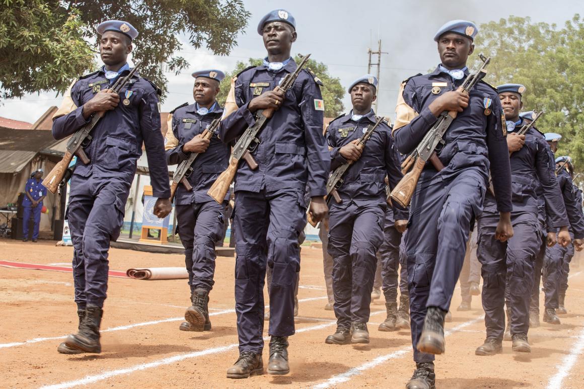 Ce 10e contingent de l’unité camerounaise de police constituée, déployé en RCA en septembre 2023, est chargé de sécuriser les 1eret 7e arrondissements de Bangui. « Il effectue des patrouilles quotidiennes diurnes et nocturnes dans l’objectif de protéger les populations civiles, et participe à la sécurisation des installations et du personnel de la MINUSCA, contribuant ainsi à la mise en œuvre de son mandat », comme l’a souligné le commandant du contingent, le Colonel Antoine Marie Nana Noah. « Ils accomplissent leur mission avec professionnalisme, dévouement, intégrité, et dans le respect des principes des Nations Unies », a-t-il ajouté.