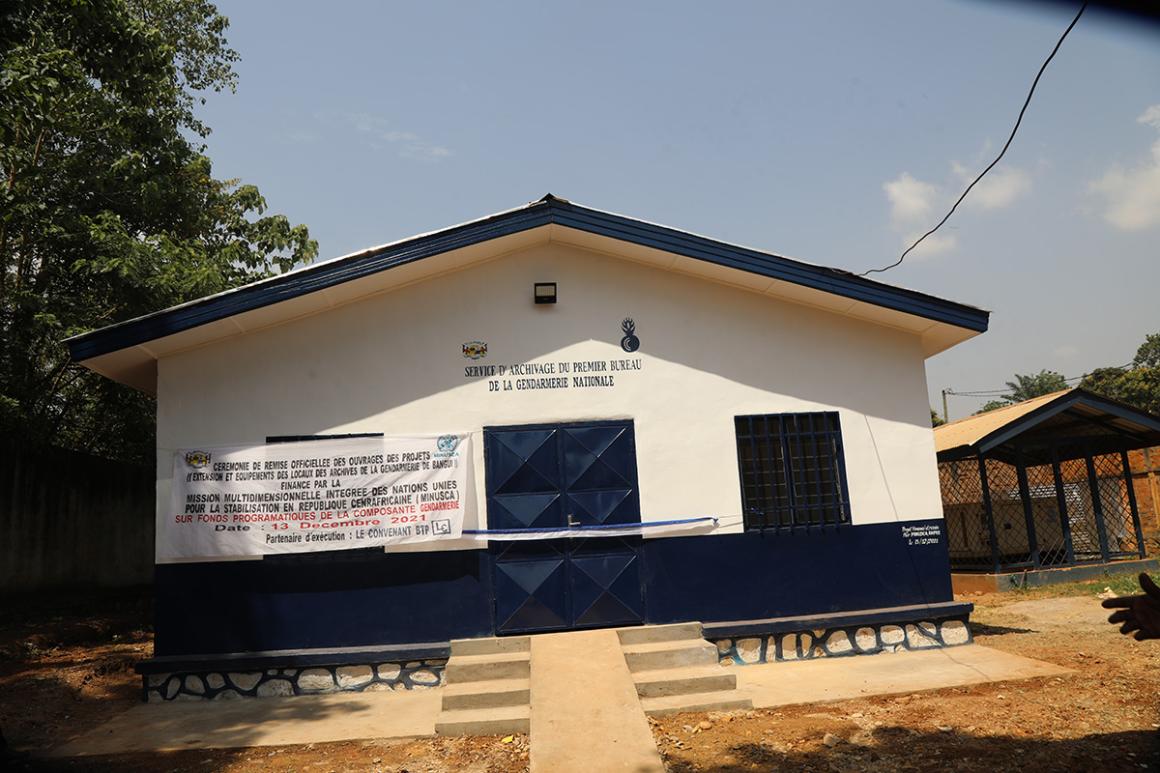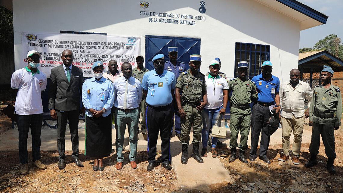 La gendarmerie nationale centrafricaine a réceptionné, le lundi 13 décembre 2021, deux bâtiments équipés comprenant des bureaux et une salle d’archives, dans le cadre d’un projet financé par la Police de la MINUSCA (UNPol).