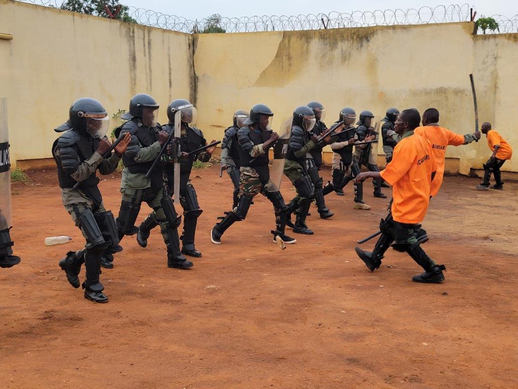 Un exercice de simulation au cours duquel les agents formés ont dû contenir une manifestation de supposés prisonniers a été organisé à la fin de la formation pour évaluer le niveau d’appropriation des apprenants.