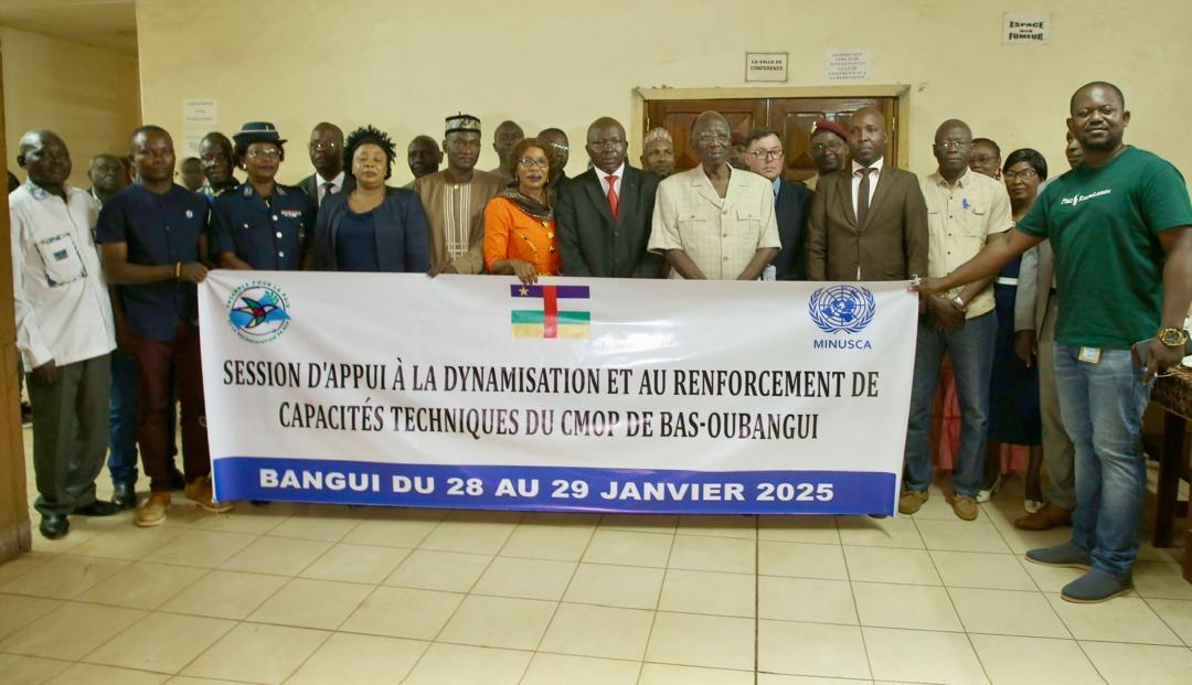 25 membres du Comité de mise en œuvre préfectoral (CMOP) de l’Accord politique pour la paix et la réconciliation en République centrafricaine (APPR-RCA) de la région du Bas-Oubangui ont pris part, les 28 et 29 janvier 2025, à une session d'appui à la dynamisation et au renforcement de leurs capacités techniques. Avec un objectif : celui de mieux œuvrer pour la pérennisation de la paix, de la sécurité, de la cohésion sociale et de l'autorité de l'État en RCA.