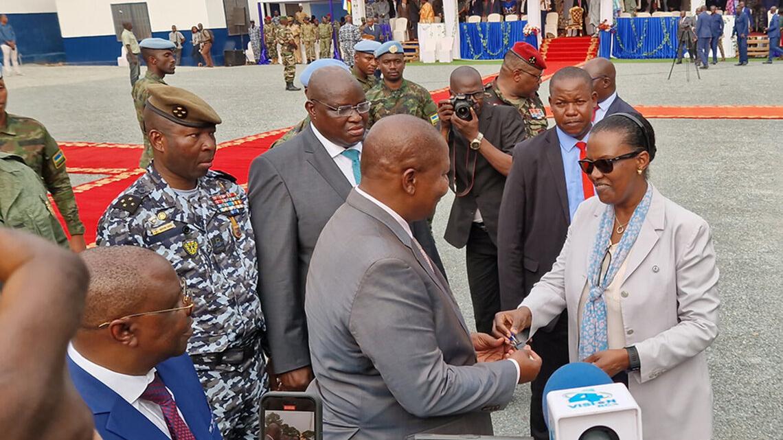 La Représentante spéciale du Secrétaire général des Nations Unies pour la République centrafricaine et Cheffe de la MINUSCA, a remis le 12 juillet 2024 au Président de la République et Chef de l’État des bâtiments rénovés à la direction générale de la police nationale. Cette initiative, visant à renforcer les capacités opérationnelles de la police, inclut également la donation de 20 nouveaux véhicules pour soutenir la mobilité des forces sur le terrain.