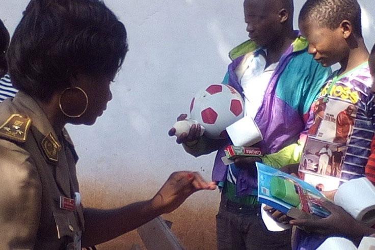 Lors d’une visite conjointe de la Chef de l’Unité des Affaires Pénitentiaires de la MINUSCA et une équipe du Programme des Nations unies pour le Développement (PNUD), le 15 décembre, l’équipe médicale conjointe de l’Unité des Affaires pénitentiaires de la MINUSCA et de la Direction de l’Administration pénitentiaire a approché la Chef de l’Unité pour l’informer que les quatre mineurs incarcérés sur place se montraient craintifs et effrayés. Les mineurs ont passé un exam médical qui a permis de faire ressortir qu’ils étaient touchés par des problèmes de peau et de malnutrition.
