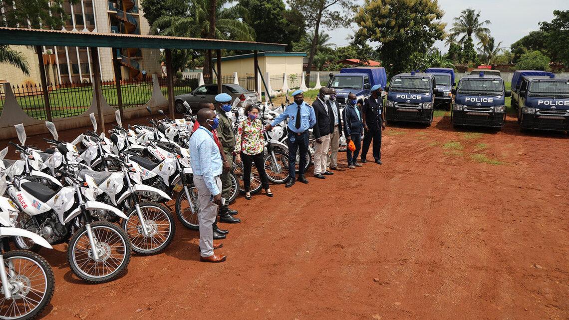 Ce sont au total 15 véhicules pick-up, 4 minibus et 39 motos qui ont été remis à la Police et la Gendarmerie centrafricaines ce 3 juillet 2020 dans les locaux de la Primature à Bangui, en présence du Ministre de l’Intérieur chargé de la sécurité publique, le Général de Division Henri Wanzet Linguissara, des Directeurs généraux de la Police et de la Gendarmerie, ainsi que des représentants de la MINUSCA et de la Représentante résidente du PNUD en Centrafrique, Natalie Boucly.