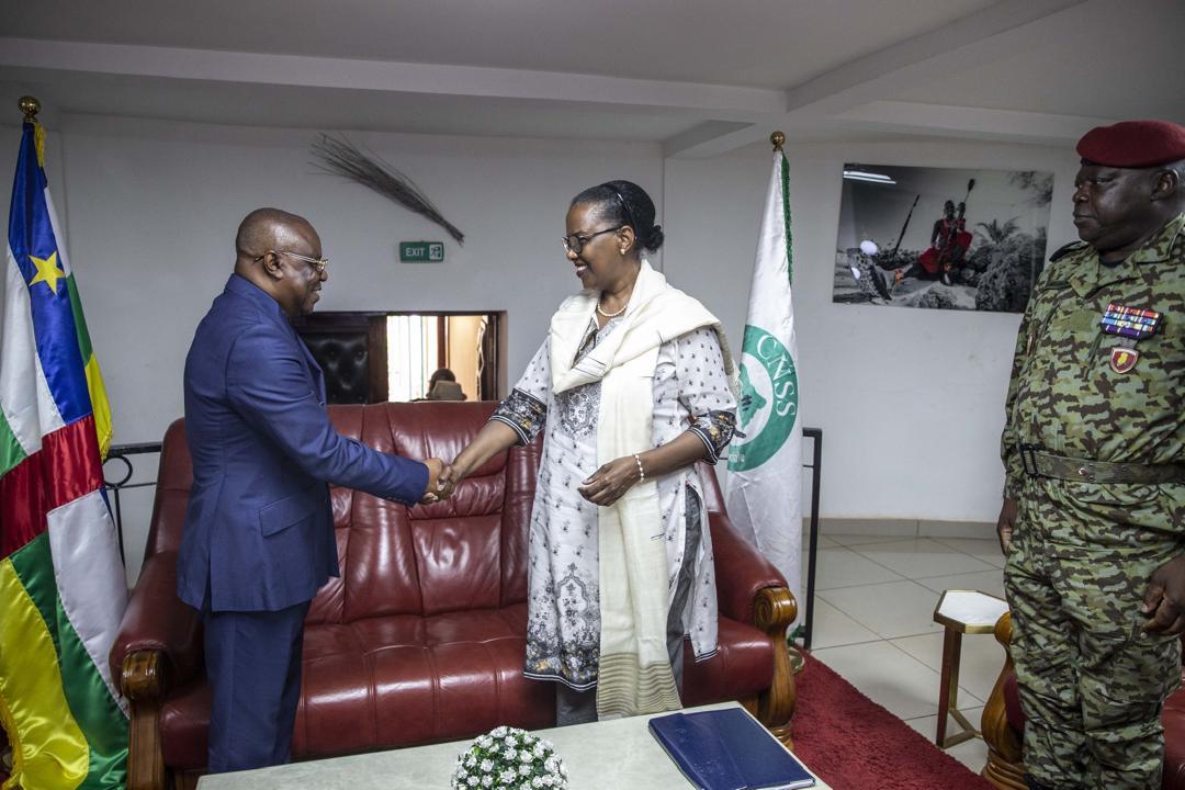 La cérémonie de validation de la politique nationale de défense, présidée par le Ministre de la défense, Claude Rameaux Bireau, s’est déroulée en présence de l’état-major des forces armées centrafricaines (FACA) et de leurs partenaires dont la MINUSCA, représentée par la Représentante spéciale du Secrétaire général des Nations Unies pour la République centrafricaine, Valentine Rugwabiza.