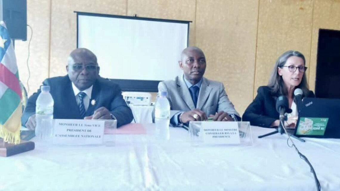 La MINUSCA et la Commission nationale de la Réforme du secteur de la sécurité (RSS) ont organisé, du 10 au 19 mai 2022, des séances d'information pour les députés sur le contrôle démocratique et la RSS. L’ouverture et la première session de ces échanges, à l’intention d’une trentaine de députés ont été faites en présence du troisième-vice-président de l’Assemblée nationale, André Nalke Dorogo, du coordonnateur de la RSS à la présidence de la République, le général Oualo, et de la cheffe de la section RSS de la Minusca, Carole Boudoin.