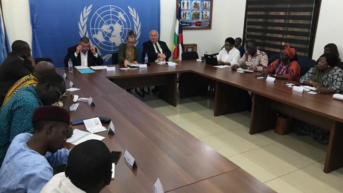 Les responsables de la société civile centrafricaine étaient réunis, ce vendredi 29 novembre 2019 autour de la Représentante spéciale adjointe du Secrétaire général des Nations Unies et Coordonnatrice humanitaire (RSASG), Denise Brown, pour évaluer les avancées dans la mise en œuvre de l’ Accord politique pour la paix et la réconciliation en République centrafricaine (APPR-RCA), relever les enjeux et défis majeurs liés à la stratégie de sensibilisation et faire des propositions pour corriger une meilleure mise en œuvre.