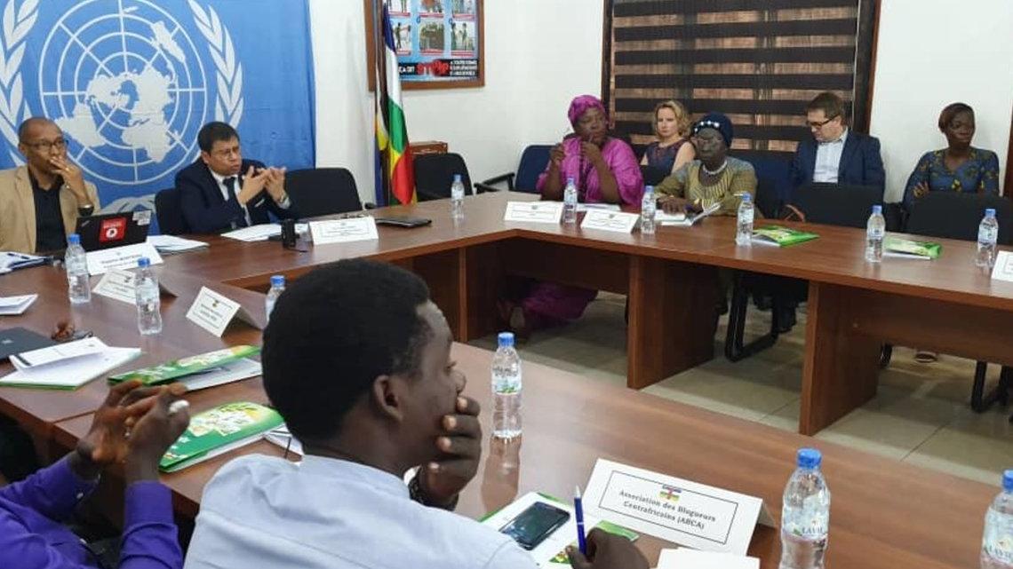 Le nouveau mandat assigné à la Mission multidimensionnelle intégrée des Nations Unies pour la stabilisation en République centrafricaine (MINUSCA), à travers la Résolution 2499 adoptée par le Conseil de sécurité, le 15 novembre dernier, a fait l’objet d’une rencontre d’explication et d’échanges avec les représentants des organisations des professionnels des médias centrafricains et autres partenaires de la communications, ouverte par la Cheffe de cabinet, Vivian Van de Perre, ce 5 décembre 2019 au Quartier général de la MINUSCA à Bangui.