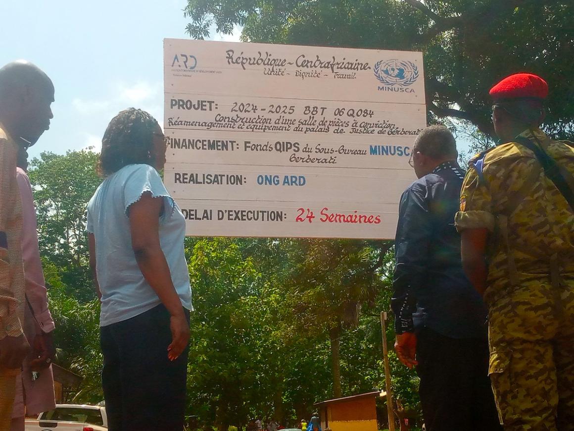 Les travaux, qui comprennent la construction d’une salle des pièces à conviction, le réaménagement et l’équipement du Palais de justice, sont une réponse aux besoins des autorités judiciaires de la Mambéré-Kadéï, dans l’objectif d’améliorer les conditions de travail des professionnels de la justice et rapprocher davantage l’institution judiciaire des citoyens, comme le souligne Aïssétou Sanogo, Cheffe du bureau de la MINUSCA.