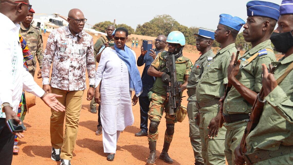 Bria, 23 février (MINUSCA) – Le Premier Ministre centrafricain, Félix Moloua, et la Représentante spéciale du Secrétaire général de l’ONU en RCA et Cheffe de la MINUSCA, Valentine Rugwabiza, sont en visite dans la Haute-Kotto pour consolider la paix, la sécurité, et lancer les projets d’investissement pour la relance l’économie de la localité. Ils conduisent une mission conjointe de haut niveau arrivée à Bria le 23 février 2023 et comprenant des membres du gouvernement centrafricain ainsi que des partenaires au développement.