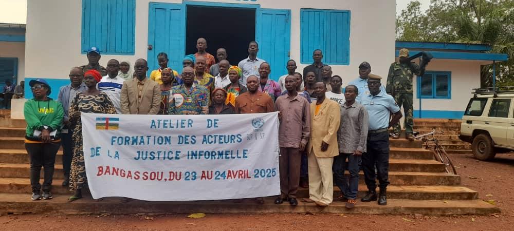 Ils sont 25 chefs de groupes et de quartiers des arrondissements, dont six femmes, de la ville de Bangassou et de la commune de Sayo Niakari, dans la préfecture du Mbomou, à prendre part, en tant qu’acteurs de la justice informelle, à une session de formation sur leurs attributions et leur collaboration avec les acteurs de la justice formelle. Organisée conjointement par la MINUSCA, du 23 au 24 avril 2025, cette activité avait pour objectif de rappeler aux acteurs de la justice informelle leur rôle et responsabilités ainsi que leurs limites dans le traitement des dossiers. La rencontre a aussi permis de renforcer la collaboration et la complémentarité entre eux et ceux de la justice formelle, ainsi que de renforcer les liens de confiance entre les magistrats et les justiciables.