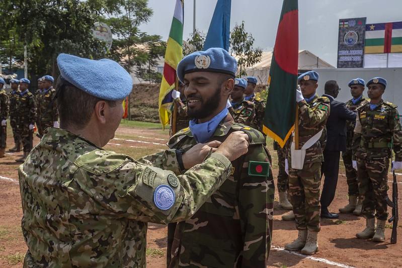 187 Casques bleus de la Force spéciale du Bangladesh (BANSF) ont été décorés de la médaille des Nations Unies, pour leur professionnalisme, détermination et courage au service de la paix en RCA.
