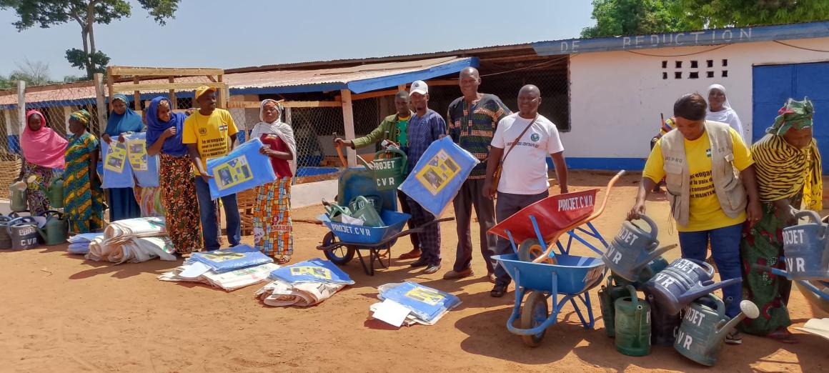 La MINUSCA a procédé, le 11 février 2025, à une distribution de kits agricoles et de maraîchage sur le site d’Amameu à Bria (Haute-Kotto) au bénéfice de dix coopératives agricoles dans le cadre de la mise en œuvre de son programme de réduction de la violence communautaire (CVR). L’objectif est de renforcer les capacités de production locale, promouvoir l'autosuffisance alimentaire et équiper les agriculteurs d'outils essentiels pour une agriculture durable.
