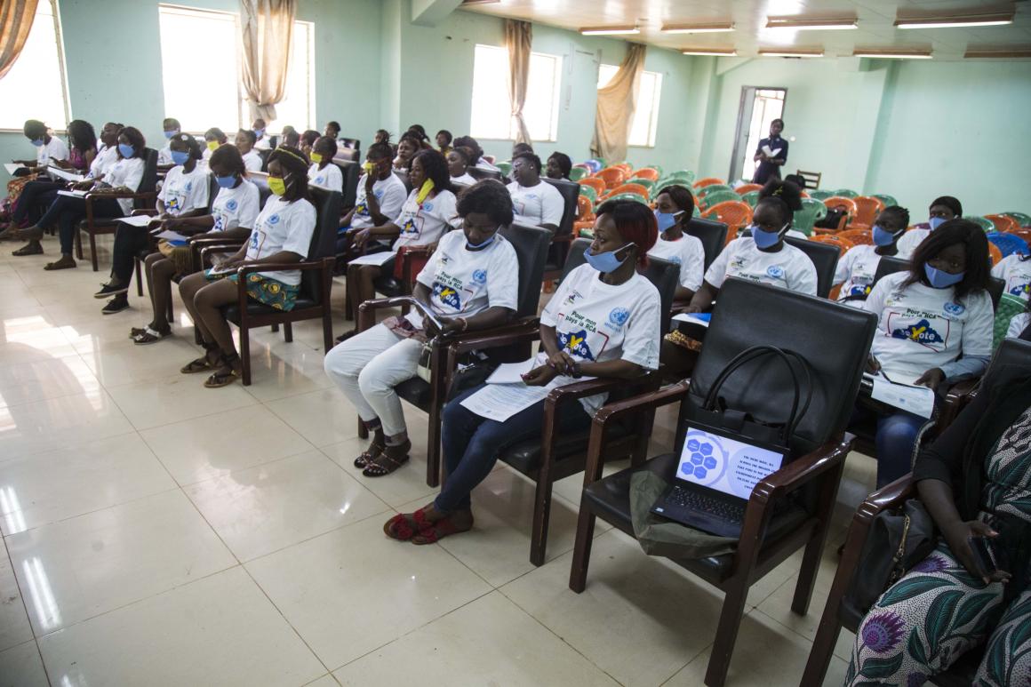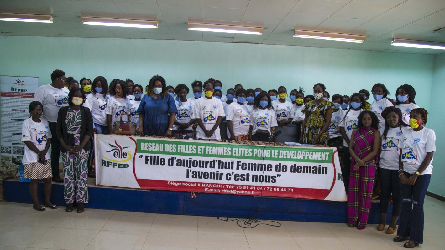 Elles sont issues de toutes les couches socioéconomiques centrafricaines et veulent un avenir meilleur pour les femmes en Centrafrique, mais ne savent pas toujours comment agir pour y parvenir. A l’invitation de la MINUSCA, en partenariat avec le Réseau des Femmes et filles élites pour le développement (RFFED), 120 femmes ont bénéficié d’un renforcement de capacités les 3 et 4 février 2021 à Bangui, sur le leadership politique des femmes pour la gestion des conflits post-électoraux.