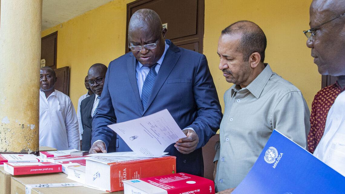 Les 760 ouvrages traitent des domaines du droit pénal, du droit civil et commercial, du droit administratif, du droit du travail, des droits de l’homme, du droit international humanitaire, de la pratique judiciaire et de la déontologie. Chaque kit comprend également un recueil des textes juridiques nationaux et internationaux en vigueur en République centrafricaine enregistrés sur un support électronique, élaboré par la Section des Affaires judiciaires et pénitentiaires de la MINUSCA.