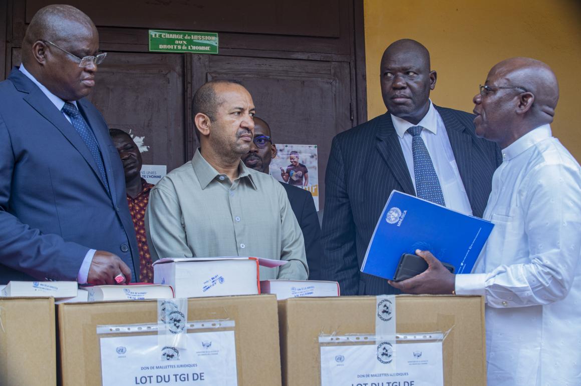 Le ministre d’Etat chargé de la Justice, des droits humains et de la bonne gouvernance, Arnaud Djoubaye Abazene, a reçu des mains du Représentant Spécial Adjoint du Secrétaire général des Nations Unies, Coordonnateur résident pour la République centrafricaine (RCA), Mohamed Ag Ayoya, le 07 mars 2023, des mallettes juridiques. Composées de 760 ouvrages juridiques, ces mallettes sont destinées aux cours et tribunaux de grande instance de Bangui et des préfectures de la RCA. L’objectif est d’améliorer la qualité des décisions judiciaires et la performance des juridictions. Inscrit dans le cadre de l’appui à la consolidation de l’Etat de droit et au renforcement du système judiciaire, le cout total de ce don s’élève à près de 29 millions de FCFA.