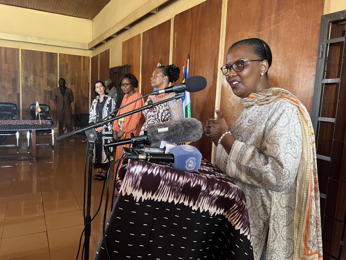 Valentine Rugwabiza, Représentante spéciale du Secrétaire général pour la République centrafricaine et Cheffe de la MINUSCA, ainsi que Meritxell Relano, Représentante de l'UNICEF en République centrafricaine, étaient présentes pour les Nations Unies. Le Gouvernement centrafricain, quant à lui, était représenté par la Ministre des affaires étrangères, de la Francophonie et des Centrafricains de l'étranger, Sylvie Baïpo Témon, et la Ministre de la promotion du genre, de la protection de la femme, de la famille et de l’enfant, Marthe Kirimat.
