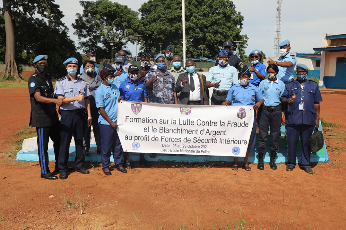 Trente agents des Forces de sécurité intérieure (FSI) de la République centrafricaine ont participé à une session de formation sur la fraude et le blanchiment d’argent tandis que trente autres ont pris part à un atelier sur la lutte contre les violences sexuelles basées sur le genre (VSBG). Lancées conjointement le 25 octobre 2021, ces deux formations ont pris respectivement fin le 30 octobre et le 05 novembre 2021.