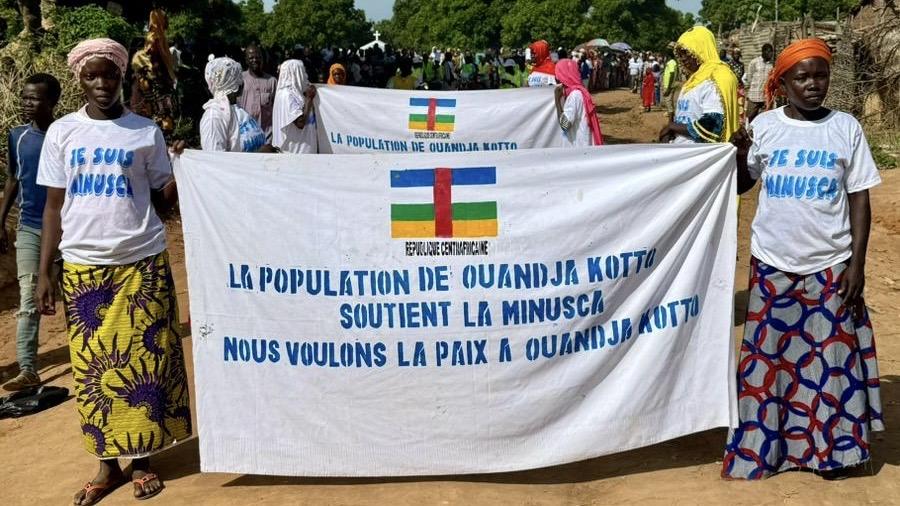 « Je suis MINUSCA », « la population de Ouandja-Kotto soutient la MINUSCA », tels sont quelques-uns des messages qu’arboraient les manifestants. Dans un mémorandum adressé à la Représentante spéciale du Secrétaire général de l’ONU en Centrafrique et Cheffe de la MINUSCA, il est indiqué que « La population de Ouandja-Kotto était longtemps sous l’emprise des groupes armés, mais grâce au plaidoyer du préfet de la Haute-Kotto et du député de Ouandja-Kotto, la Représentante spéciale a lancé le plan intégré de sécurisation du triangle Nord-Est qui prend en compte la sous-préfecture de Ouandja-Kotto, Ouadda et Ouanda-Djallé qui servaient des zones de trafic d’armes et minutions. C’est ainsi que depuis le 14 aout 2022, la MINUSCA s’est installée à Ouandja-Kotto, ce qui constitue pour nous une libération ».