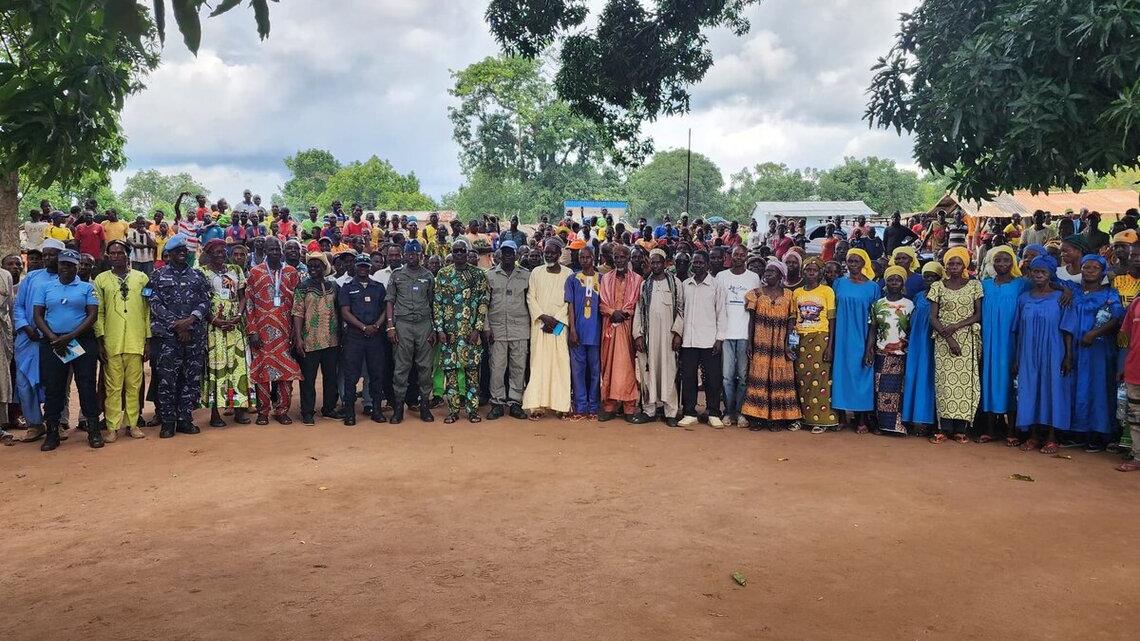 Composée d’une trentaine de membres parmi lesquels des autorités locales, des représentants du corps judiciaire, des membres du Comité préfectoral de mise en œuvre de l’Accord politique pour la paix et la réconciliation en Centrafrique (CMOP), du Comité local de paix et de réconciliation (CLPR), ainsi que des représentants de la MINUSCA, la mission a rassemblé plus de 400 participants issus de Balembé et des villages environnants.