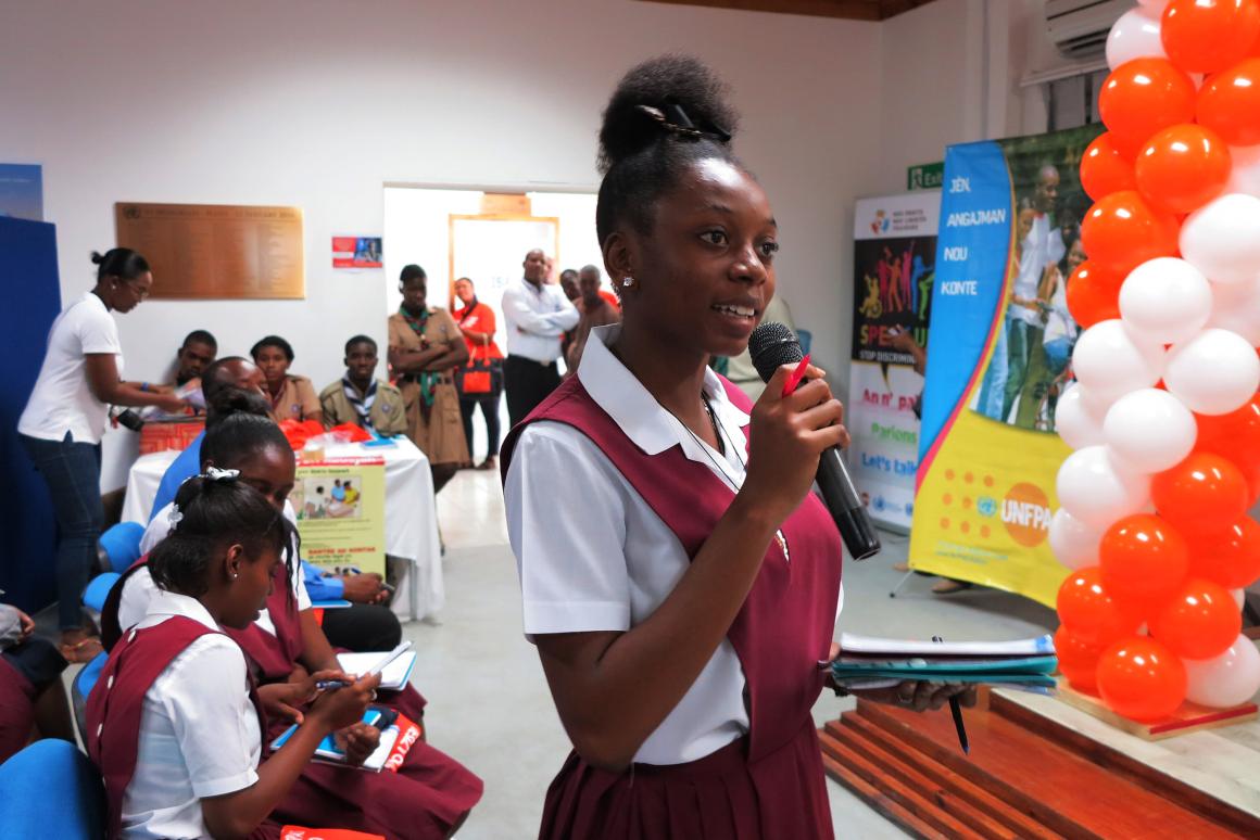 Chouloute fait partie des quelques 200 jeunes en provenance des quatre établissements scolaires de la région métropolitaine de Port-au-Prince qui ont pris part à une séance de sensibilisation relative à « la violence basée sur le genre(VBG) et le rôle de la Police ». Cette sensibilisation-formation a eu lieu à l’initiative du Bureau de communication de la Mission, le vendredi 4 décembre 2015, au quartier général de la MINUSTAH.