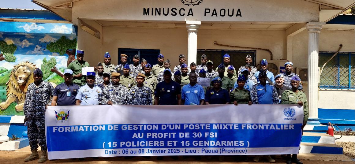 Alors que les préparatifs pour l’inauguration et la mise en service du poste mixte de Bembéré sont en cours, la MINUSCA a organisé du 7 au 9 janvier une formation sur la gestion intégrée des frontières dans un poste frontalier mixte qui a réuni 15 gendarmes et 15 policiers de Ngaoundaye, Bémal et Paoua.