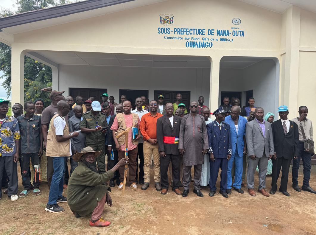 Située à une cinquantaine de kilomètres au nord-ouest de Kaga-Bandoro, la localité de Ouandago, chef-lieu de la jeune sous-préfecture de Nana-Outa, a réceptionné, le 18 juillet 2025, le bâtiment administratif de la sous-préfecture, et s’impose aujourd’hui comme un modèle émergent de consolidation de la présence étatique en République centrafricaine. Ce progrès remarquable s’inscrit dans une dynamique de stabilisation appuyée par des investissements stratégiques et un accompagnement constant de la MINUSCA.