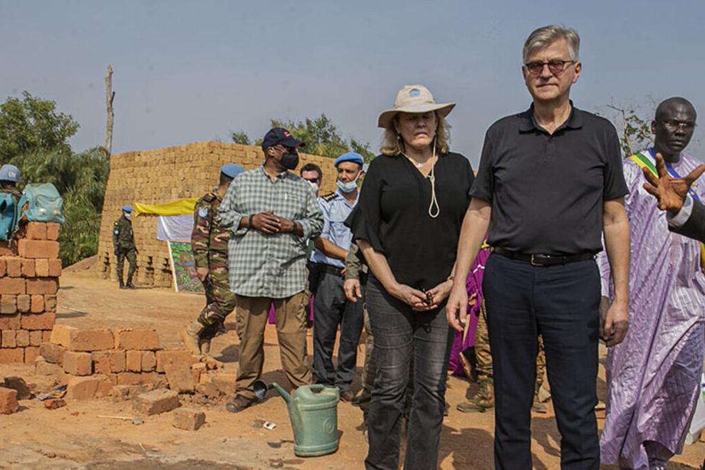 Lors de sa visite de terrain à Bria, ville située à environ 600 kilomètres au nord-est de Bangui et première étape de sa mission de quatre jours en République centrafricaine, le 25 février 2022, le Secrétaire générale adjoint…