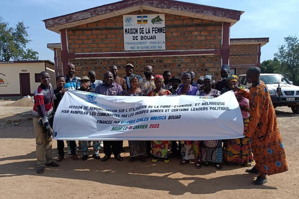 La Division de la Communication stratégique et de l’Information publique de la MINUSCA (SCPI) appuyée par les sections Affaires civiles, Genre, Droits de l’homme, Assistance Electorale, la composante police de la MINUSCA…