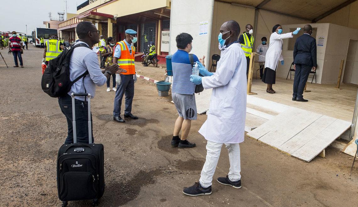 Autres décisions importantes : la suspension provisoire des congés ainsi que le retour en Centrafrique du personnel actuellement en congé ou en mission, l’annulation des vols non-essentiels au sein de la Mission, la suspension des rotations des contingents de sa Force, ainsi que des plans de voyage pour toutes les nouvelles recrues. Et comme l’a fait valoir le Ministre Pierre Somsé : « L’action que mène la MINUSCA permet de prévenir, de protéger le personnel de la MINUSCA et puis, par la même occasion, contribue à la protection de la santé publique dans le pays et à la santé internationale. Elle a systématiquement saisi le ministère pour signaler qu’on a un cas suspect et obtenir le prélèvement qu’il faut. Cette coopération est très importante. En plus de ça, il y a cet appui matériel, un appui technique aussi puisque la MINUSCA fait partie de l’équipe de coordination. Elle intervient de façon active dans les dispositifs que nous mettons en place notamment à l’aéroport. Elle a mis en place des tentes, non seulement pour renforcer notre capacité d’accueil, mais aussi pour la prise en charge des contingents qui arrivent ».