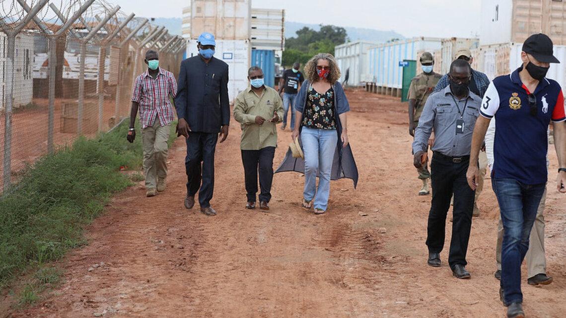 S’assurer du bon fonctionnement du centre de transit et d’isolement des malades et des cas suspects de COVID-19 mis en place par la MINUSCA, tel est l’objectif de la visite effectuée, le samedi 4 juillet, par le Représentant spécial du Secrétaire général des Nations Unies en RCA et chef de la MINUSCA, Mankeur Ndiaye, en compagnie du ministre de la Santé et de la Population, le Dr Pierre Somsé, et de la Représentante spéciale adjointe, Denise Brown, entre autres personnalités.