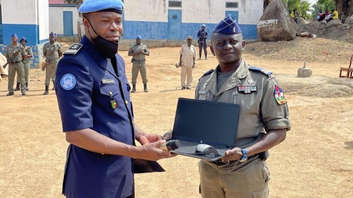 S’exprimant au cours de la cérémonie de remise, le Commandant secteur Ouest de la police des Nations Unies, Dossou Pacôme ANATO, a rappelé que « ce projet d’équipement des Forces de sécurité intérieure (FSI) en matériel informatique, fournitures de bureau et groupes électrogènes vise à appuyer les FSI pour être totalement autonomes dans le cadre de l’exécution de leurs missions régaliennes », avant d’exhorter la population de Bouar et de ses environs à « collaborer avec les en participant activement à la Police de proximité pour une paix durable, gage de développement durable. »