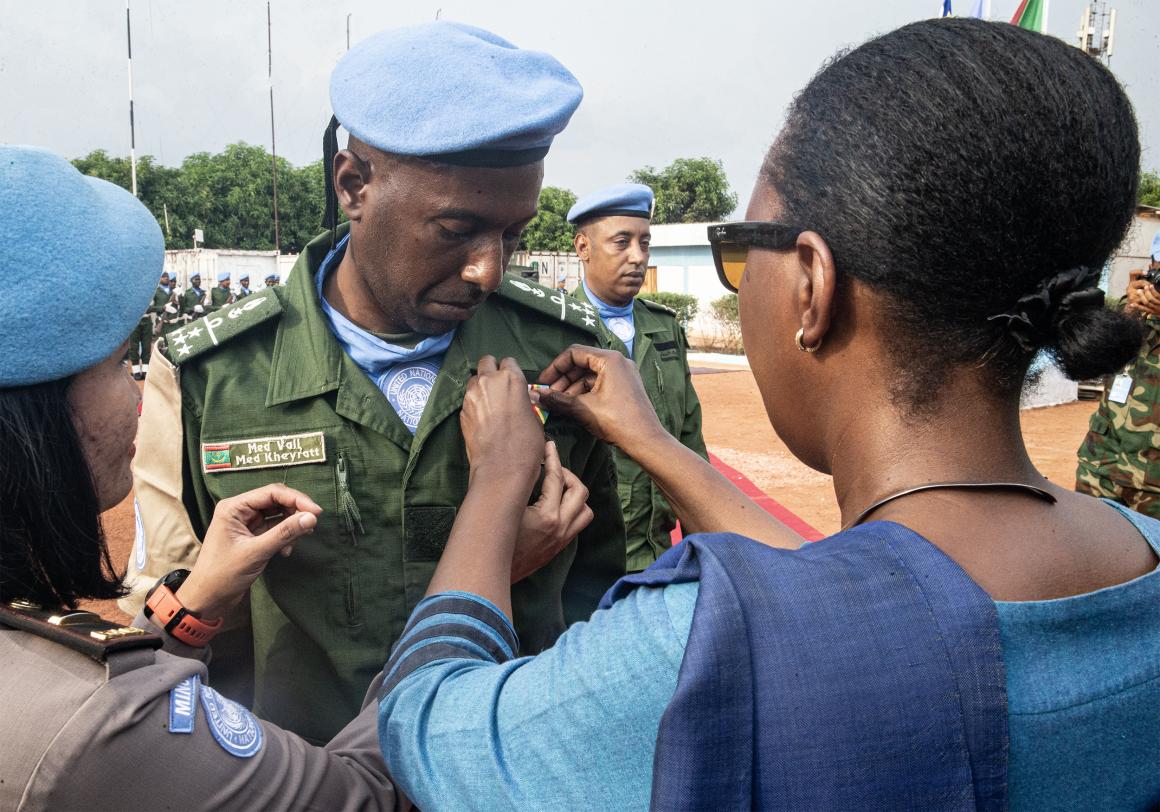 138 Casques bleus de la première Unité de police constituée de la République Islamique de Mauritanie, déployés au sein de la MINUSCA depuis le 23 mars 2022 et arrivés à terme de leur mission ont été décorés de la médaille des Nations Unies le 17 mars 2023.