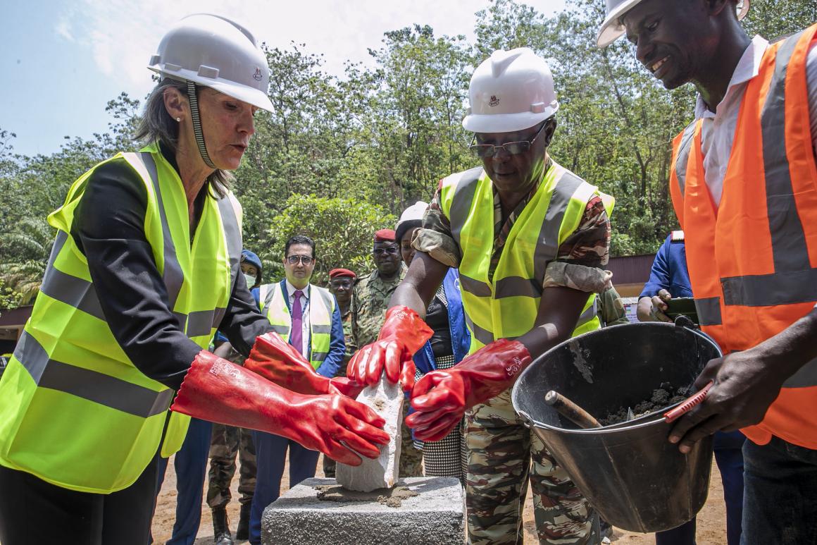 La maternité du camp Henri Izamo va bientôt bénéficier de nouveaux locaux et d’une réhabilitation du bâtiment principal. La cheffe de section de la Réforme du Secteur de Sécurité de la MINUSCA et le Directeur des services de santé de la gendarmerie nationale ont posé la première pierre des travaux le 17 mars 2023.