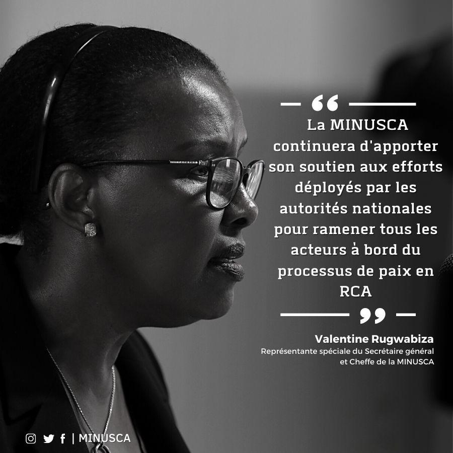 "Soyez assurés que la MINUSCA continuera d'apporter son soutien aux efforts déployés par les autorités nationales pour ramener tous les acteurs à bord du processus de paix en RCA, " a-t-elle ajouté.