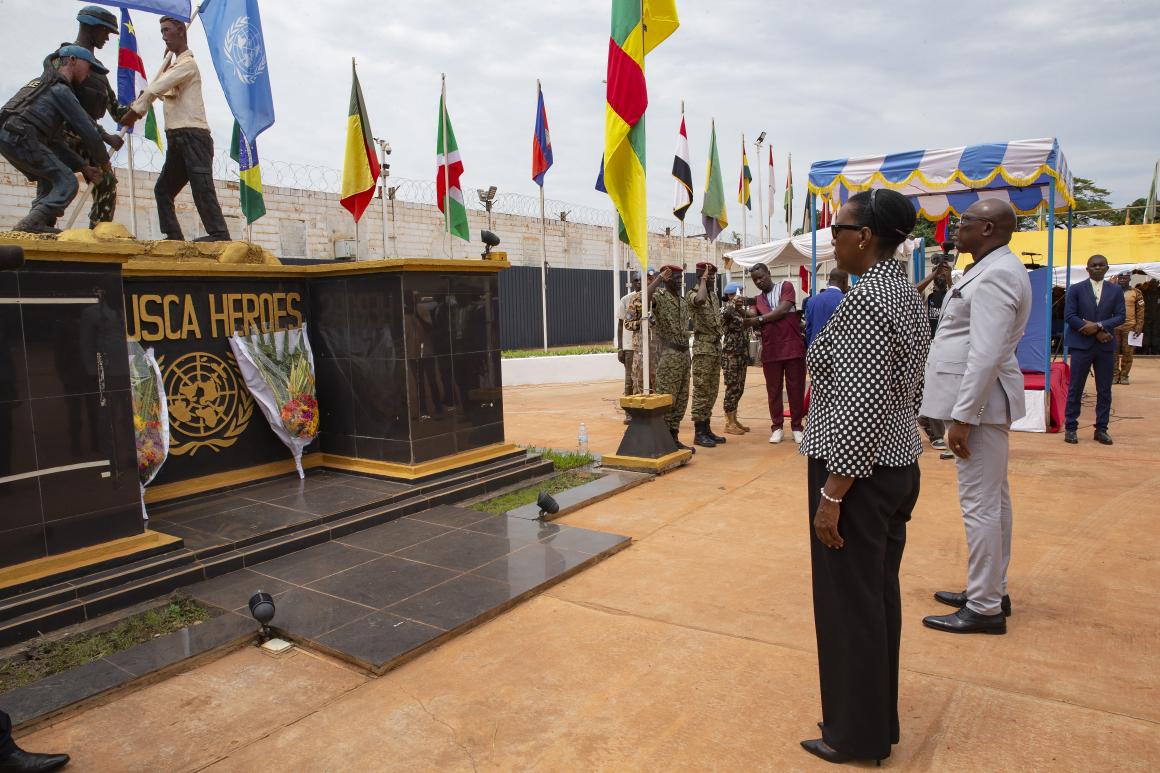Entre autres moments forts de cette célébration, le dépôt de gerbes de fleurs par le Chef du Gouvernement et la Cheffe de la MINUSCA au monument honorant les Casques bleus décédés en mission ; une parade des Casques bleus et d’un détachement des Forces centrafricaines de défense et de sécurité, suivi de la visite de l’exposition-photos organisée pour la circonstance.