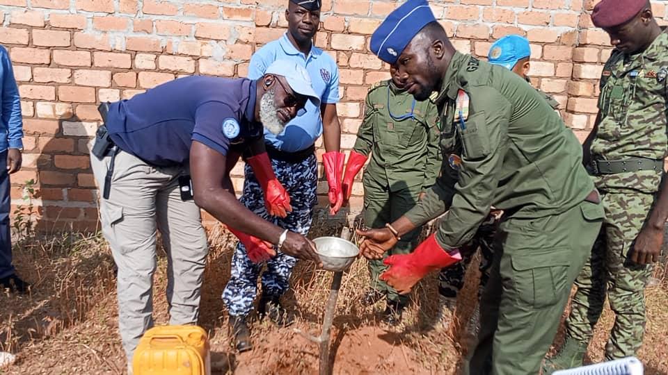 À Kaga-Bandoro, dans la Nana-Gribizi, les autorités locales, la MINUSCA, les acteurs humanitaires et la population ont planté des arbres pour marquer cet événement, un moment empreint d’émotion et d’engagement en faveur de la paix et de la cohésion sociale pour un avenir stable dans le pays.