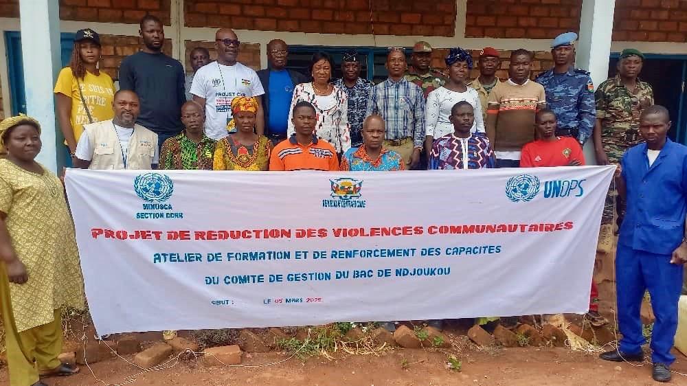 La préfecture de la Kémo poursuit son désenclavement suite à la réouverture du bac de Ndjoukou, situé à 75 km de Sibut. Réhabilité grâce à un financement du programme de la réduction de la violence communautaire de la MINUSCA (CVR), le bac améliore la connectivité entre les populations locales et les services étatiques entre les deux rives de la rivière Kemo.