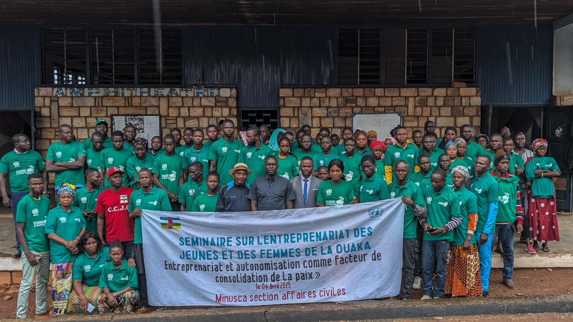 Une centaine de jeunes et de femmes ont participé, le 4 avril 2025, à Bambari, dans la préfecture de la Ouaka, à une séance d'échange organisée par la MINUSCA afin de mieux comprendre la notion d'entrepreneuriat. L'entrepreneuriat, étant un levier important pour l'autonomisation des jeunes et la consolidation de la paix, a permis à cette rencontre d'examiner les défis rencontrés dans ce domaine et de proposer des solutions pour faire décoller ce secteur à Bambari.