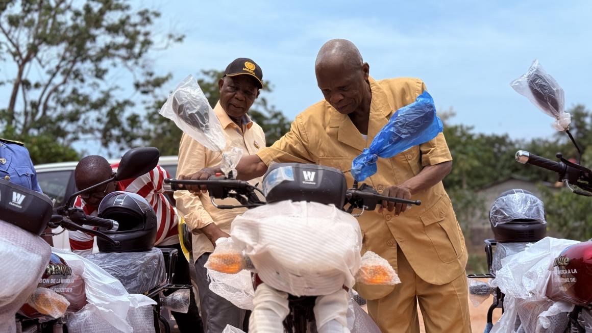Dans le cadre de son mandat de restauration et d’extension de l’autorité de l’État en République centrafricaine, la MINUSCA a officiellement remis, le 24 avril 2025, à Bouar, quatre motos et un lot de fournitures de bureau aux autorités locales des villes de Bouar, Baboua, Baoro et Abba dans la préfecture de la Nana-Mambere.