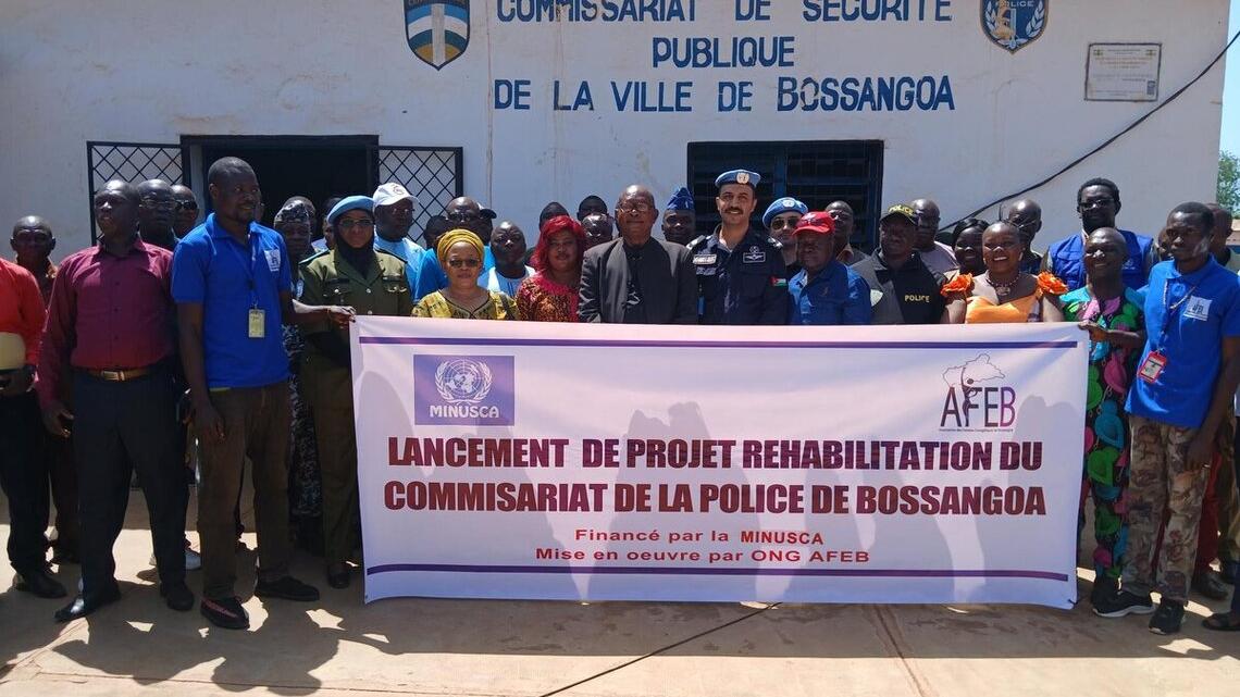 Le 7 mai 2025 à Bossangoa, dans la préfecture de l’Ouham, les autorités locales et la MINUSCA ont officiellement lancé les travaux de réhabilitation du commissariat central de la ville. Ce projet comprend la rénovation du bâtiment et son électrification, ainsi que la construction d’une salle de sûreté et d’un bloc sanitaire. Financé par la Police de la MINUSCA, il vise à améliorer les conditions de travail des Forces de sécurité intérieure (FSI) et à renforcer la protection des civils.