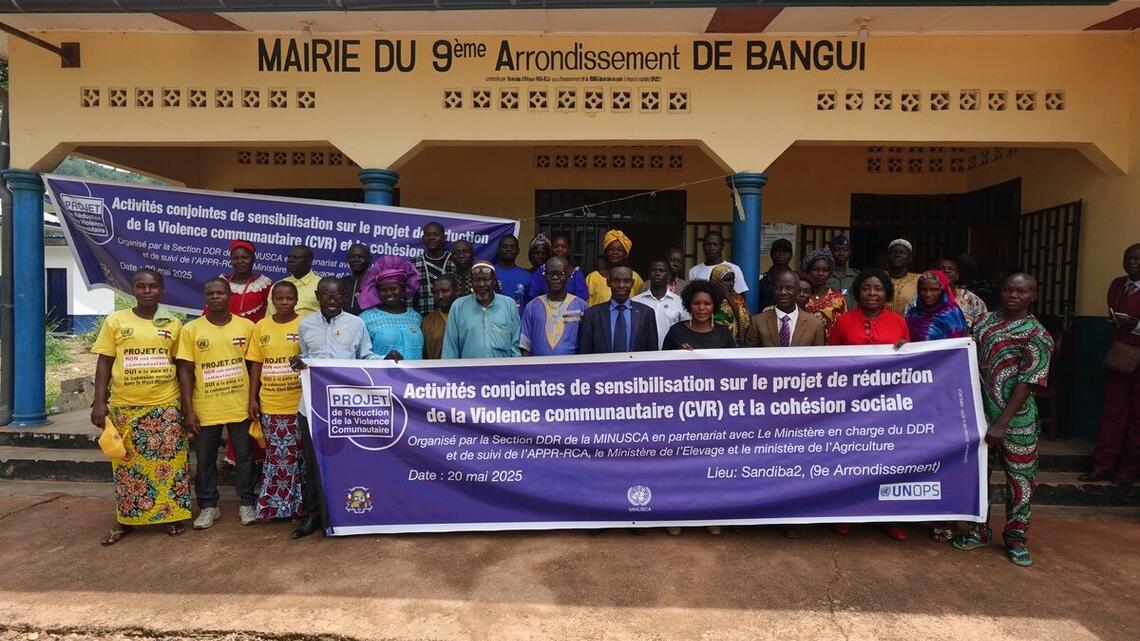 Des leaders communautaires, des chefs de groupes et de quartiers de Landja Mboko, 9e arrondissement de Bangui, ainsi que des représentants des forces de défense et de sécurité ont pris part, le 20 mai 2025, à une séance de sensibilisation pour une transhumance apaisée dans la localité. Cette activité, mise en œuvre en partenariat avec la Direction générale de l’Élevage et le Ministère chargé du Programme DDR, s’inscrit dans le cadre du Programme de réduction de la violence communautaire (CVR), avec pour particularité, dans cette neuvième édition à Bangui, l’introduction d’un programme agropastoral.