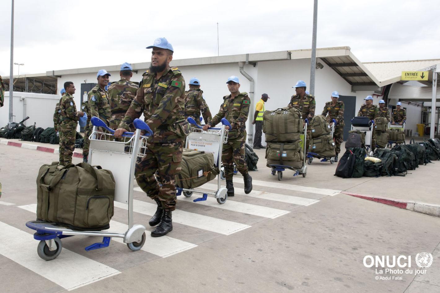 Réduction des effectifs en prévision de la fermeture de l’ONUCI en juin 2017 : des Casques bleus du Contingent médical bangladais quittent la Côte d’Ivoire (Abidjan, août 2016)