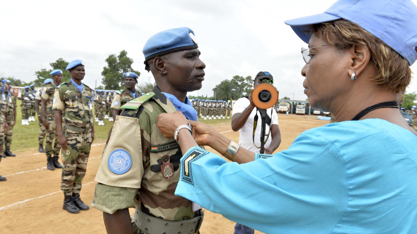La Représentante spéciale du Secrétaire général des Nations Unies pour la Côte d'Ivoire, Aïchatou Mindaoudou, Chef de l’Opération des Nations Unies en Côte d’Ivoire (ONUCI) a présidé, le vendredi 23 décembre 2016 à Tabou (509 km d'Abidjan), la cérémonie de remise de médaille des Nations Unies à 650 Casques bleus du 23e Bataillon nigérien déployés dans le secteur d'Abidjan et dans le secteur ouest, notamment à Gagnoa, Grabo et Tabou vers la frontière du Liberia.