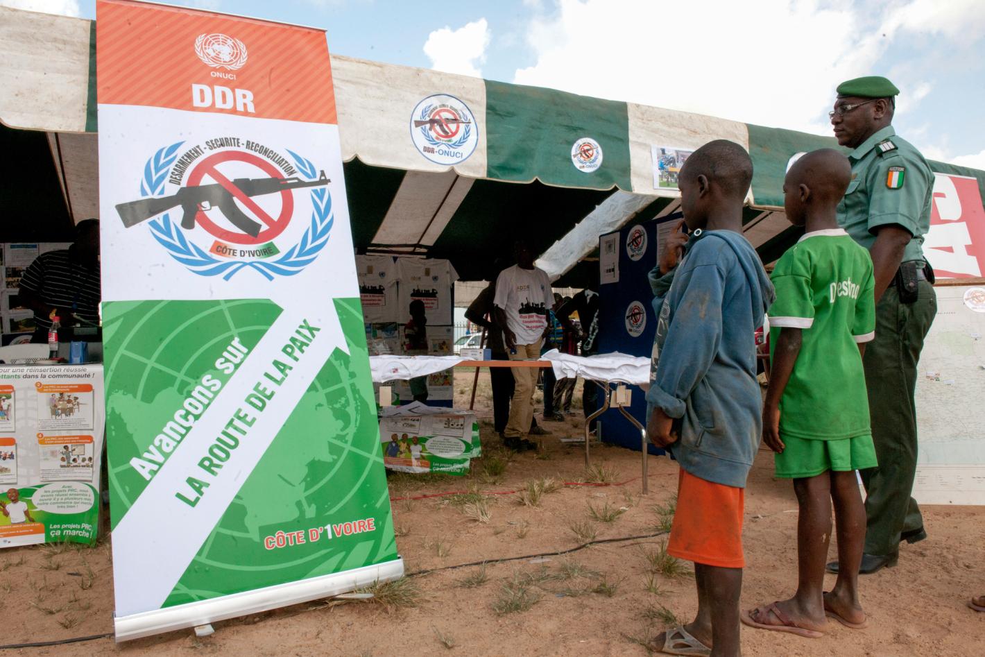 Le rôle de l'Opération des Nations Unies en Côte d’Ivoire (ONUCI) dans le processus de Désarmement, de Démobilisation et de Réinsertion (DDR) a commencé à être défini en 2004 par la Résolution 1528 (2004) du Conseil de sécurité des Nations Unies. Il s’est conclu le 30 juin 2015 au terme de la Résolution 2162 (2014). Le Programme national de DDR, qui a été mis en place par le Gouvernement, a souvent été variable dans son exécution, mais la suite à la crise post-électorale en 2011, le Gouvernement a vu la démobilisation, le désarmement et la réintégration des ex-combattants en tant que facteur clé pour la stabilisation, le redressement politique et économique de la Côte d'Ivoire. La responsabilité du Département DDR a été de veiller à ce que la Côte d'Ivoire soit en conformité avec les normes internationales, à ce que le processus soit crédible, qu’il soutienne et qu’il encourage le dialogue entre les anciens belligérants et les structures en charge du processus.