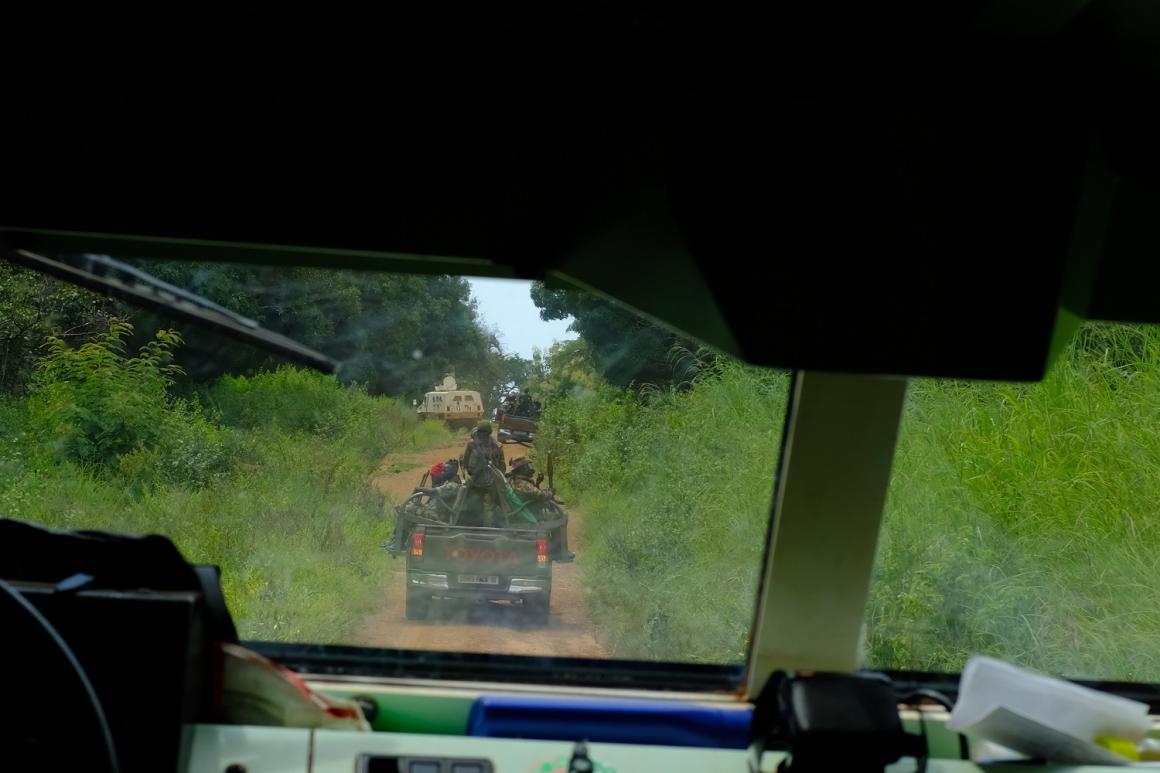 Cette patrouille dite « Robuste », est composé de 4 groupes de combats, divisée entre MINUSCA et FACA. Les blindés de la MINUSCA, ouvrent et ferment le convoi tandis que les pickups des FACA, embarquent des hommes lourdement armés prêt à réagir.