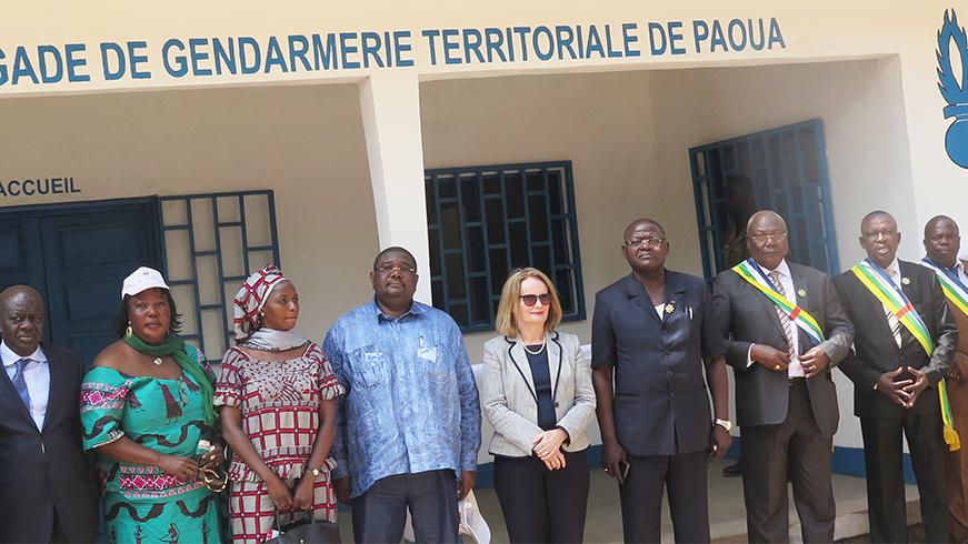 Sur place, elle a procédé à la remise officielle de quatre bâtiments réhabilités par la MINUSCA dans le cadre des Projets à Impact rapide. Les quatre bâtiments réhabilités et équipés sont la gendarmerie, le palais de Justice, la sous-préfecture et la Case du chef. Ils ont été inaugurés en présence d’une population venue massivement pour voir « le retour des symboles de l’Etat » selon l’expression du député Lucien Mbaigoto.